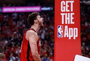 本场比赛,申京攻防两端打得游刃有余,进攻端有内有外打得很高效,还能串联球队;防守端抢断盖帽样样有。