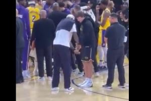 高尔夫上瘾!暂停期间 詹姆斯和里夫斯边讨论边演示推杆动作