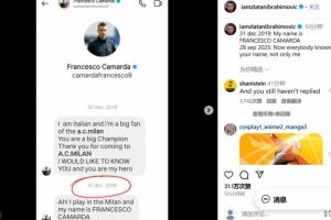 这条消息可以追溯到2019年12月30日,当时年仅11岁的卡马达给伊布发消息,感谢他重返米兰,并表示伊布是自己的英雄,希望有朝一日能见到他,还补充说自己也在为米兰效力。