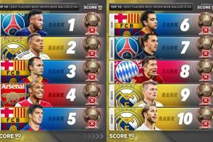 无金球球员TOP10: